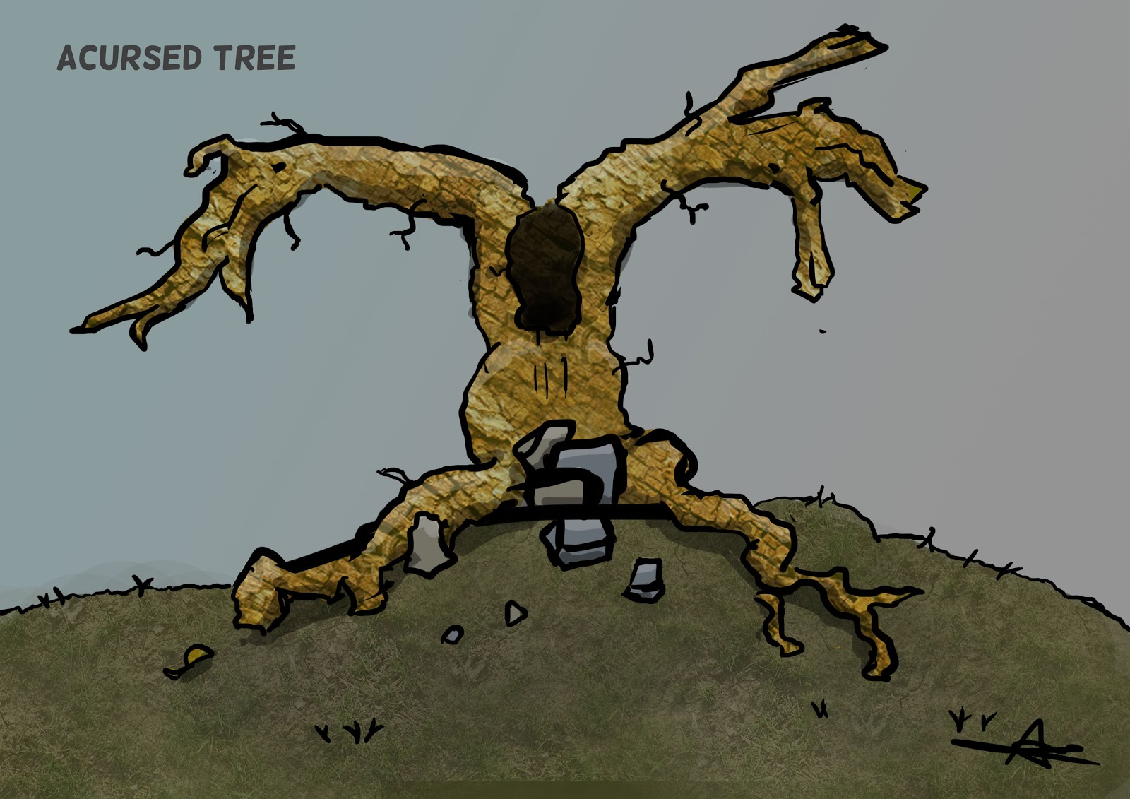 For the tree leading into the cave, I was inspired by the tree in Tim Burton's 'Sleepy Hollow' (1999). A 'three-prongued' theme runs through the Tinderbox story (3 dogs, 3 rooms, etc.) and I want to emphasise this in my work. To that end I plan to include references to the number three in the design of both the environment and characters. I plan to use the three-prongued, triangular flag from the civil war in the soldier's outfit (see below in blog) and I have given the tree three branches and roots spreading out equilaterally.